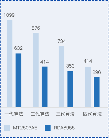 我们经历了第一代的笋尖算法、第二代竹笋算法、第三代的莴笋算法,到如今已经更新到了第四代的芦笋算法。以MT2503AE和RDA8955为例测算,可以看到随着差分算法的迭代升级,差分包越来越小,升级性能越来越高。第四代的芦笋算法已经比我们初始的第一代笋尖算法提高了50%——60%的性能!